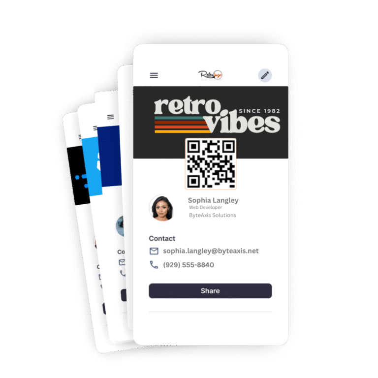 Create a branded card with your contact info, video intro, social links, and service pitch. Perfect for building trust, sharing referrals, and standing out.